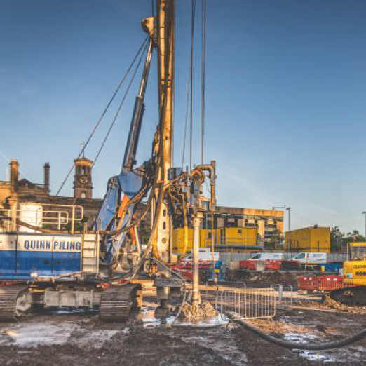 Quinn Piling were awarded the contract to install the piling for City Quays 3, which will be Northern Ireland’s tallest office building. The £50m project will build upon Belfast Harbour’s successful City Quays development, which is currently home to two Grade A offices, a 900-space multi-storey carpark, and a Marriott Hotel.