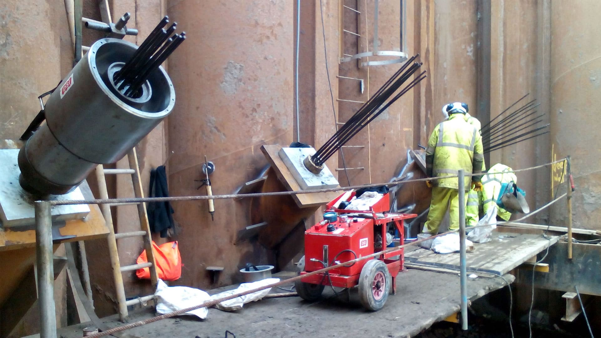 Tendons can be made of steel bar, wire strand or GRP and are fabricated under factory conditions. This is usually undertaken by an external supplier on smaller projects but for large projects Quinn Piling can set up dedicated manufacturing facilities.