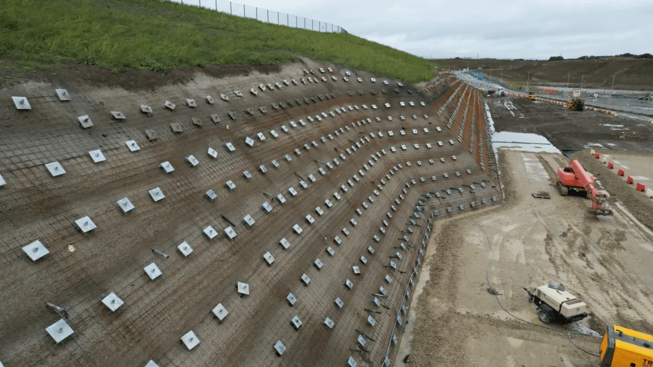 Soil-nailing is a slope-stabilisation process that uses fully-bonded ties installed in the ground.